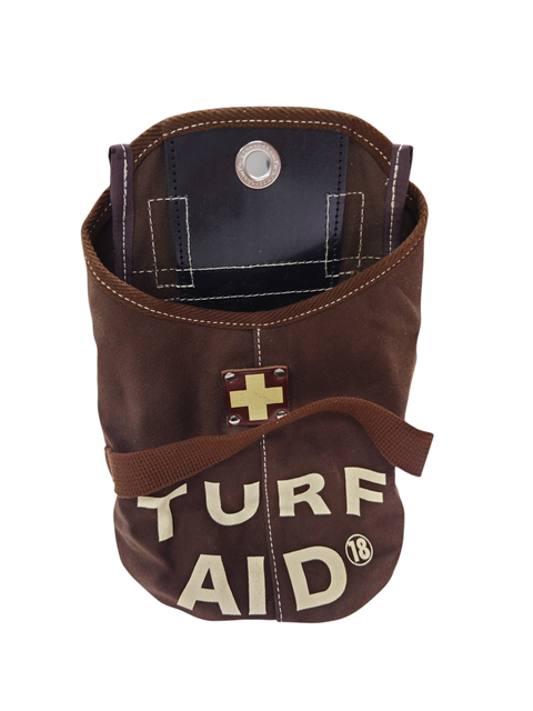 実は私自身、数年前から「ターフエイド」という自前の目土袋をキャディバッグに付けてラウンドしています。特別なことではなく、ごく自然な習慣として、ショットの後はディボット跡に砂を入れています。