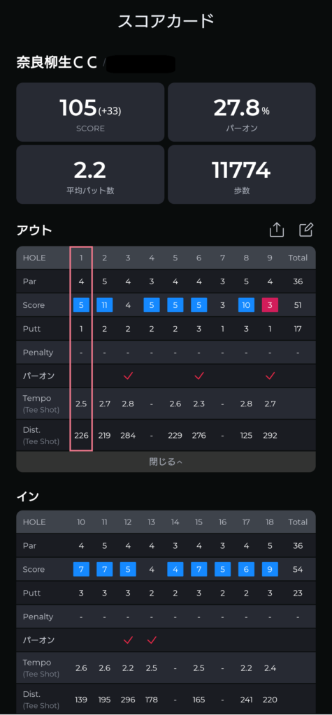 そして、スコアを大きく崩した原因は、前半OUTコースでの2つのロングホール(Par5)です。